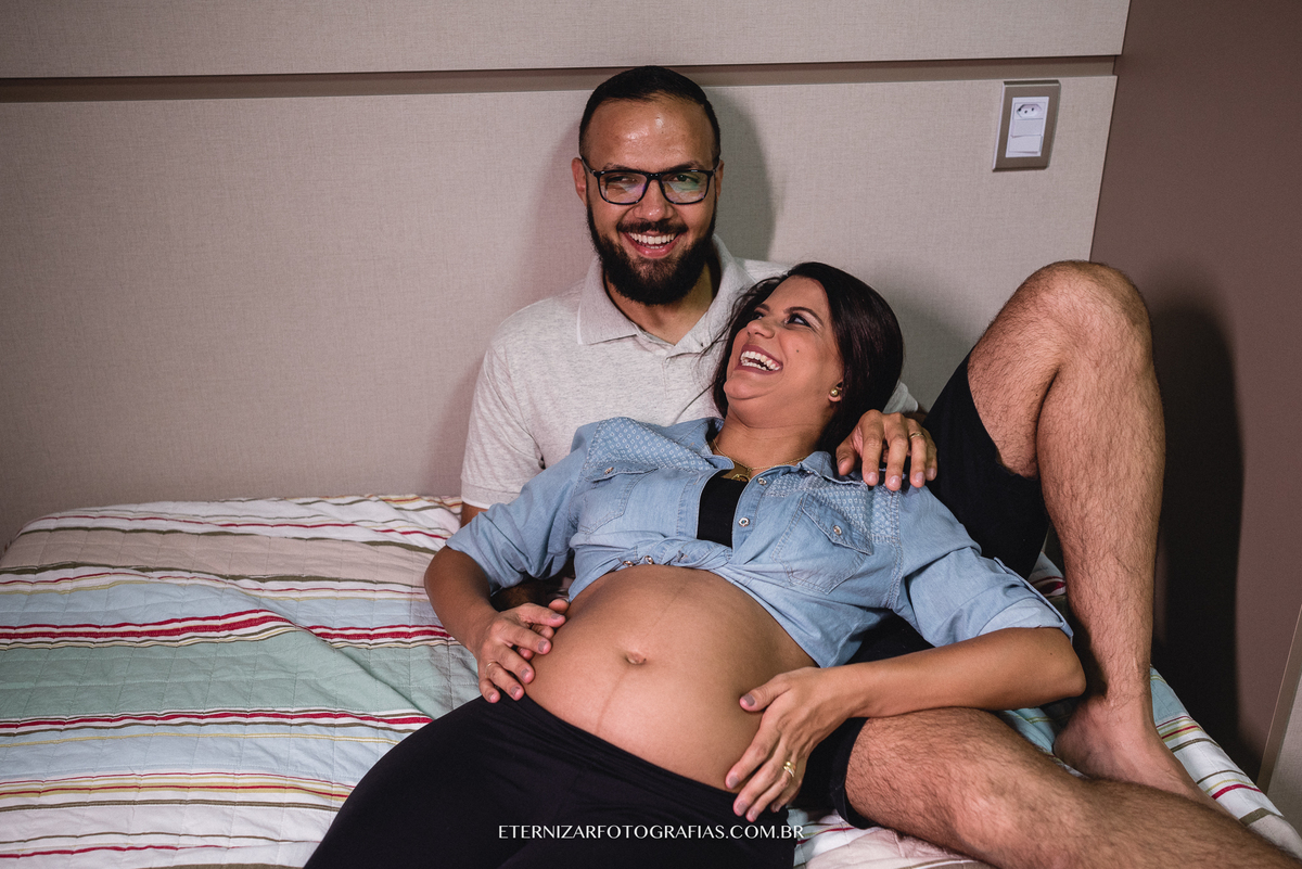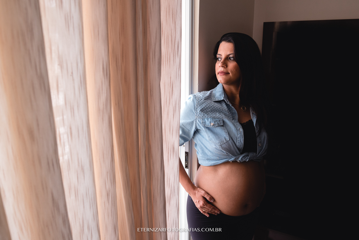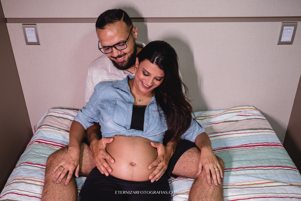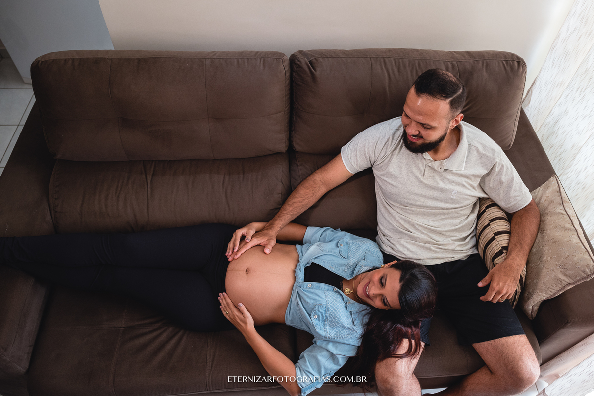 Deus nos presenteou com uma manhã linda, mas a ideia da sessão gestante era justamente fotografar esse lindo momento em seu apartamento, em meio aos detalhes do quartinho da Luisa, no aconchego e conforto desse lar que eles construíram com muito carinho.